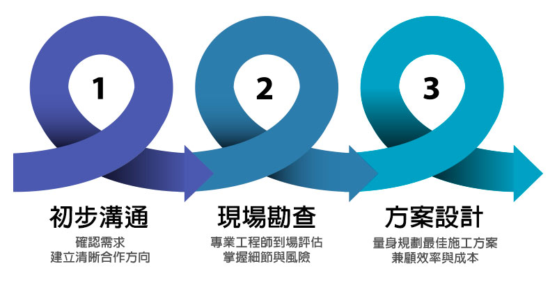 - 現場勘查:專業工程師到場評估,掌握細節與風險。