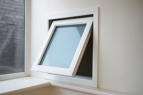 常見於浴室、後陽台、樓梯間或採光井。往外開啟不占室內空間,開窗角度可調,通風效果好。缺點是若外面緊鄰走道或建物,容易碰撞或滴水,且五金需耐候強度高。優點:不佔室內空間、排濕良好、適合高牆面