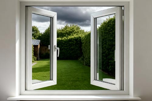 以鉸鍊開啟,密合度高、隔音與氣密效果佳,是氣密窗與系統窗常見結構。適用臥室、書房、安靜區域。但開門角度需預留空間,如窗前有傢俱可能受限。優點:隔音好、防水好、密封效果佳
