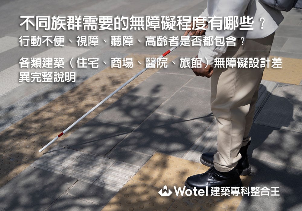 不同族群需要的無障礙程度有哪些?行動不便、視障、聽障、高齡者是否都包含?各類建築(住宅、商場、醫院、旅館)無障礙設計差異完整說明