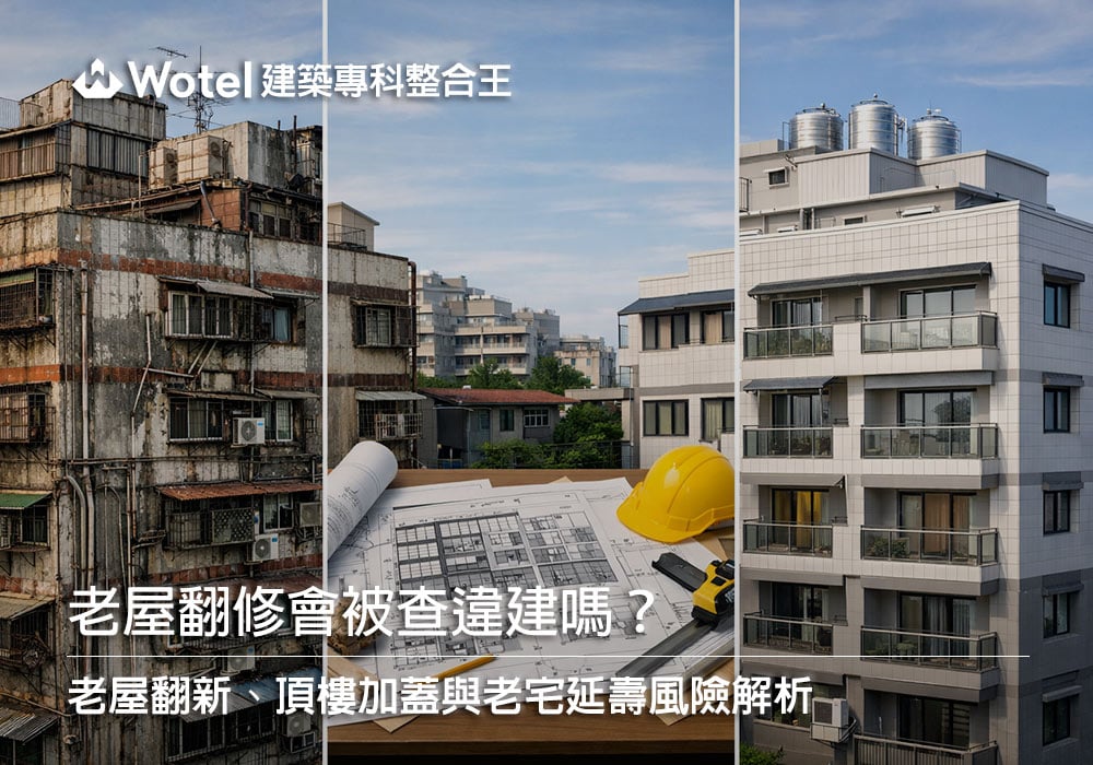 在進行老屋翻修、老屋翻新或舊屋翻修時,最常出現的疑問之一就是:「會不會被查違建?」尤其是常見的頂樓加蓋、陽台外推、鐵皮增建或其他違章建築,不少屋主擔心只要開始翻修或申請老宅延壽補助,就可能被政府查核甚至要求拆除。本文將整理老屋翻修會不會查違建、頂樓加蓋是否會影響老宅延壽申請、違建工程是否能補助等重點,幫助屋主在規劃翻修前先了解可能的風險與條件。老屋翻修會被查違建嗎?與老宅延壽申請審查的關係