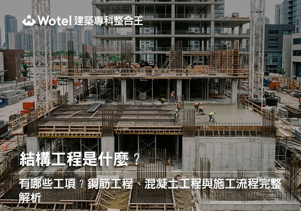 結構工程是將結構設計與結構圖說真正落地的施工階段, 主要負責建築承重骨架的實際施作, 包含基礎、梁柱、樓板、牆體與各類結構體工程。 本文完整整理結構工程的定義、常見工項與施工內容, 包括基礎工程、鋼筋工程、模板工程、混凝土工程、 鋼構工程與結構體施工, 同時說明從放樣定位、基礎施工、鋼筋綁紮到混凝土澆置與養護拆模的完整施工流程。 也進一步解析結構工程與結構設計的差異、 現場實際在做什麼、哪些屬於結構工程、哪些不算, 以及結構工程費用常見的影響因素, 協助讀者更清楚理解建築骨架是如何被真正施工完成。