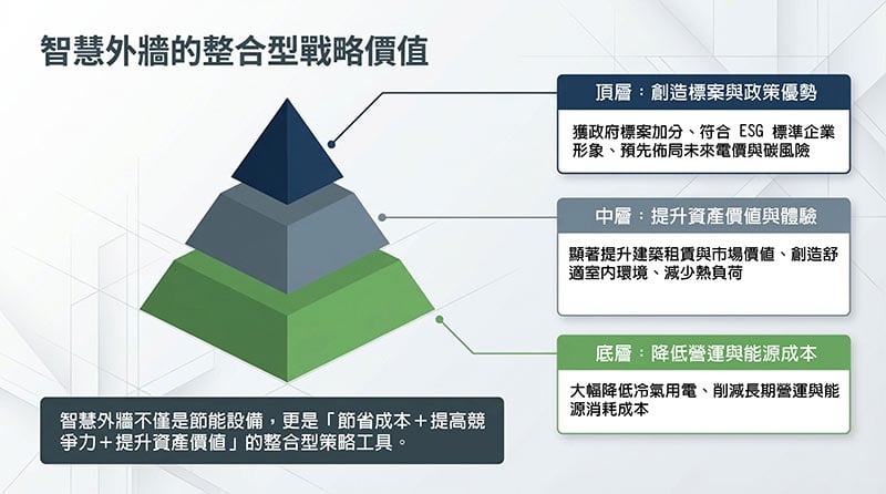 → 預先因應能源成本上升與碳排政策👉 對企業與政府來說,智慧外牆不只是節能設備,而是:「節省成本+提高標案競爭力+提升資產價值」的策略工具