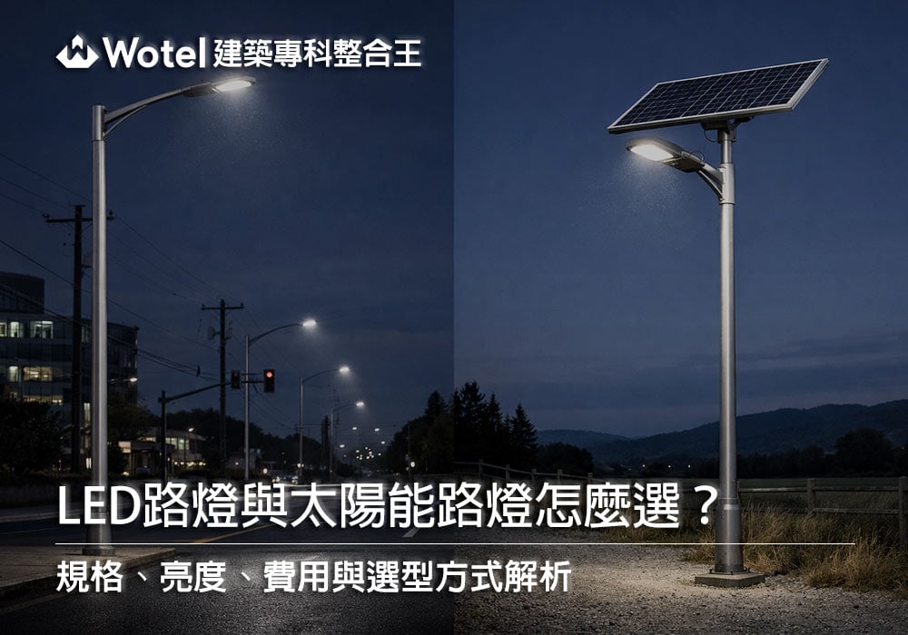 LED路燈與太陽能路燈是目前最常見的兩種戶外照明方案, 但在供電方式、亮度穩定性、施工方式與整體成本上差異明顯。 本文完整整理兩者的核心差異, 並比較規格選擇、亮度表現與完整費用結構, 包含燈具、燈桿、配電工程與電池系統成本。 同時解析不同使用情境下的最佳選擇, 以及長期成本與常見選型錯誤, 協助讀者在規劃道路照明或工程發包時, 做出最適合的決策。