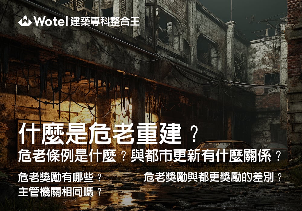台灣許多建築屋齡已超過 30 年,部分甚至存在耐震不足與消防設施不全的風險。為加速改善老屋安全,政府在 2017 年推動《危險及老舊建築物加速重建條例》,簡稱 危老條例。危老重建與都市更新(都更)都是改善都市環境的重要政策,但兩者在適用條件、流程與獎勵設計上存在差異。本文將帶你一次看懂 危老重建的定義、與都更的關係、危老獎勵內容,以及危老與都更獎勵的差別。