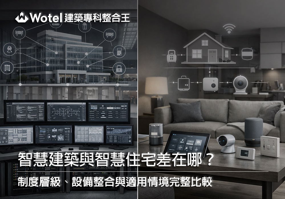 「智慧建築」與「智慧住宅」常被混為一談,但實際上,兩者在制度層級、整合深度與適用對象上有本質上的差異。 如果沒有分清楚,很容易在規劃階段就選錯方向、花錯預算。 本文將以「對照比較」的方式,從制度、設備、成本與實際使用情境,完整說清楚智慧建築與智慧住宅的差異。