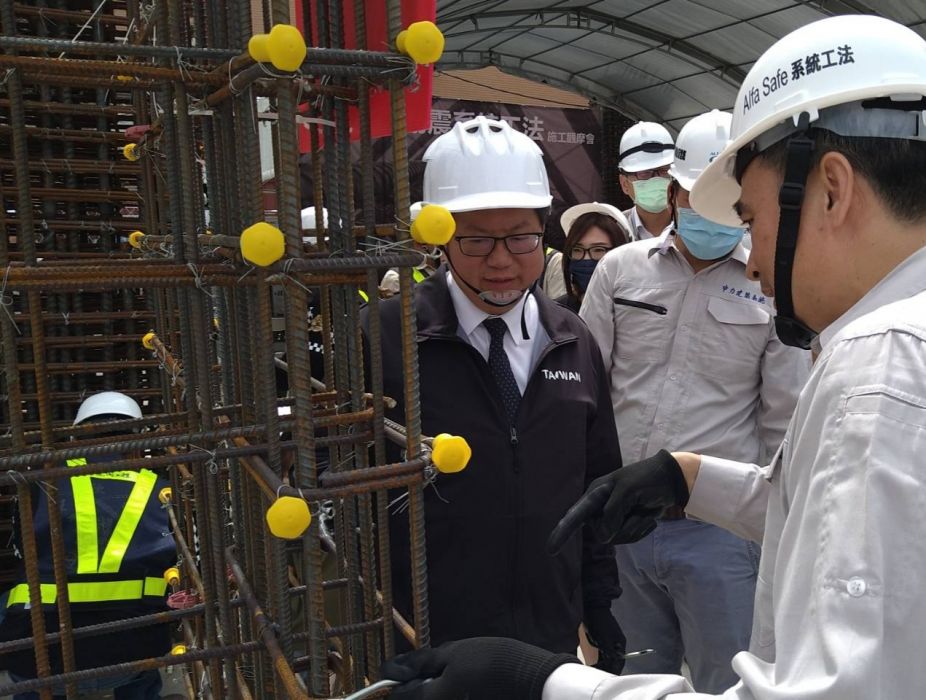 桃園市長鄭文燦今天(4/27)上午出席平鎮一號社會住宅「建築安全履歷耐震系統工法施工觀摩會」,表示平鎮一號社會住宅是公共工程首次採用「建築安全履歷耐震系統工法」,不但降低人為因素的風險,更提升施工品質的控管,讓建築結構安全更上一層樓。 鄭文燦表示建築安全履歷耐震系統工法是「戴雲發 &Alfa Safe」團隊,運用鋼筋系統化及自動化加工技術,解決鋼筋的加工綁紮與組裝問題,從結構規畫開始,做全面